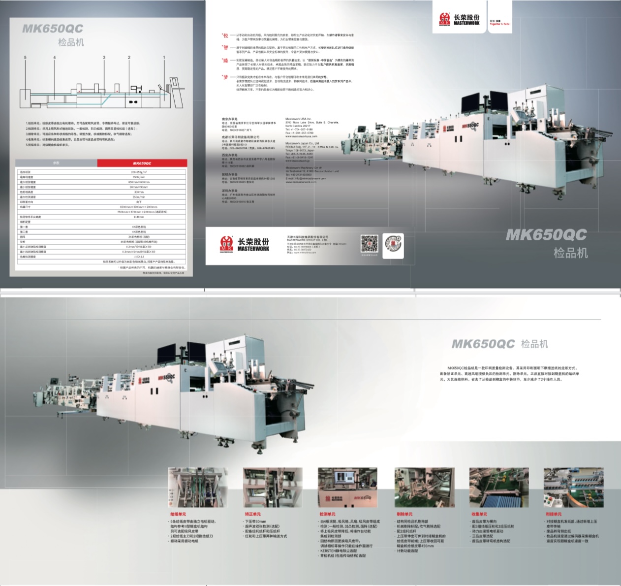 MK650QC檢品機(jī)是一款印刷質(zhì)量檢測(cè)設(shè)備。其采用印刷面朝下摩擦送紙的走紙方式,配備矯正單元、高速風(fēng)扇提供負(fù)壓的檢測(cè)單元、剔除單元,正品直接對(duì)接到糊盒機(jī)的給紙單元,為其連線供料。
